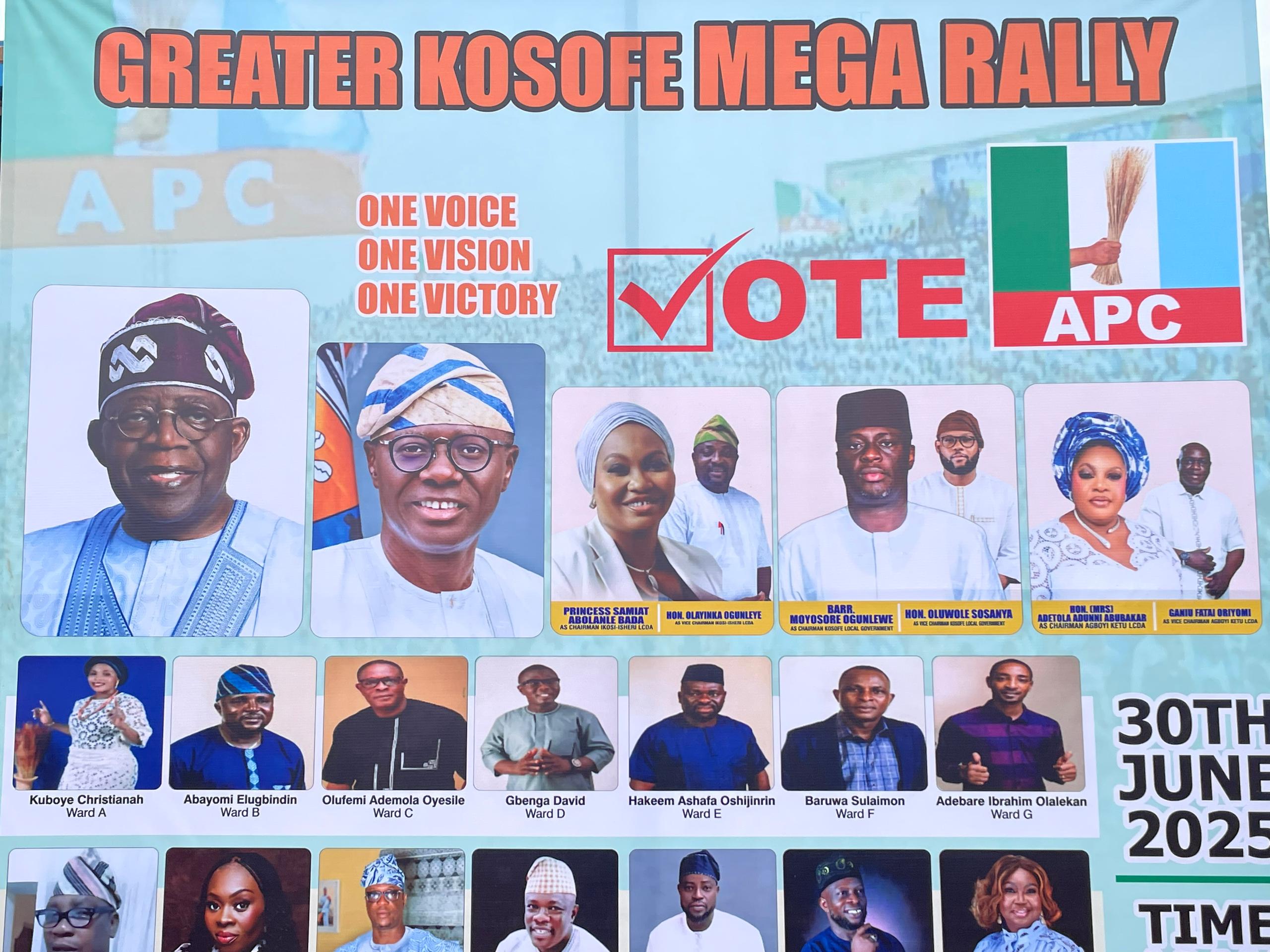 The All Progressive Congress (APC) is presently holding a Greater Kosofe Mega Rally in Lagos.
