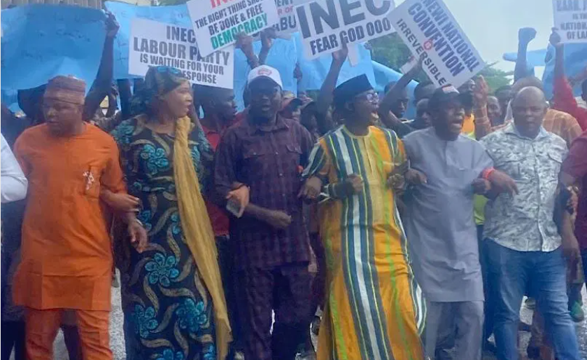 Civil society organizations aligned with the Julius Abure-led faction of the Labour Party (LP) have surged into the National Headquarters of the Independent National Electoral Commission (INEC) to advocate for the inclusion of the party’s candidates in the impending nationwide bye-elections.