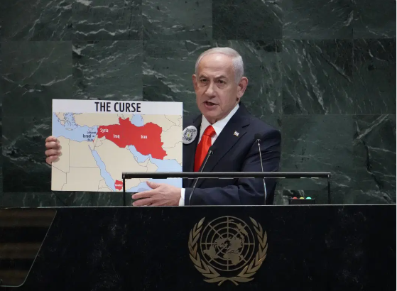 Israeli Prime Minister Benjamin Netanyahu vowed Friday in an angry UN address to block a Palestinian state, accusing European leaders of pushing his country into “national suicide” and rewarding Hamas.