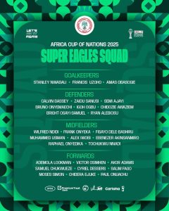 The wait is over as Nigeria has officially released its 28-man squad for the 2025 Africa Cup of Nations (AFCON) in Morocco, with star forward Victor Osimhen and midfield anchor Wilfred Ndidi headlining the team selected by head coach Eric Chelle.